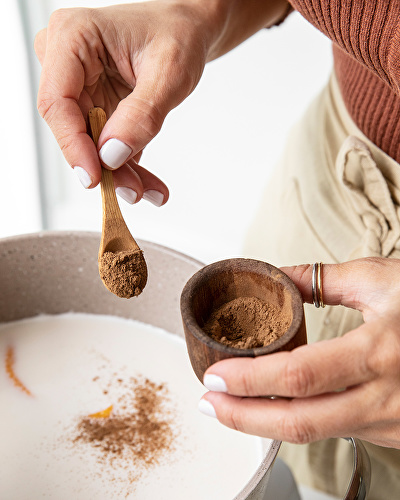 - Poner a calentar la leche, el agua,