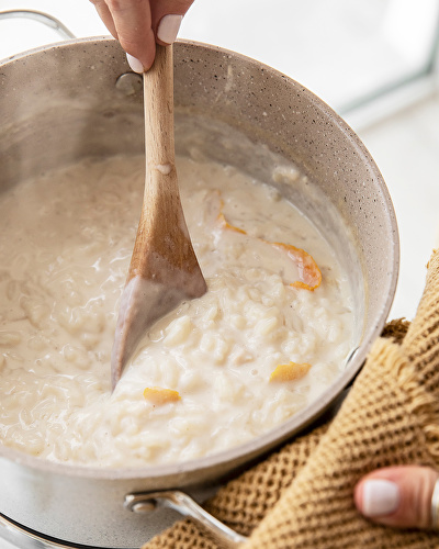 - Revolver lentamente para que no se pegue y cocinar durante 20 o 30 minutos. Si te gusta el arroz con leche con el grano a punto, menos tiempo. Si te gusta el grano pasadito, que muchas veces en postre se prefiere, entonces más. Lo pueden ir probando. Si les falta líquido, como puse en la lista de ingredientes, le pueden agregar más agua, o más crema de leche si lo quieren más cremoso todavía.