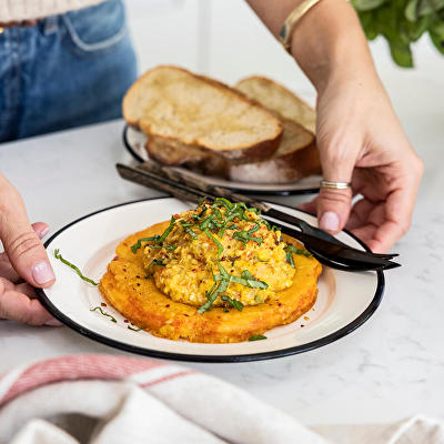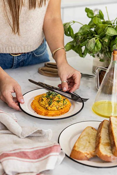 1 cebolla2 cebollas de verdeo1 morrón6 choclos frescosAceite de oliva (cantidad necesaria)1 cdta de pimentón1 cdta de ají molido100 g de provoleta rallada (o ½ provoleta)Hojas de albahaca fresca1 pizca de nuez moscadaSal y pimienta a gustoProvoleta entera (para la base)Tostaditas (para acompañar)